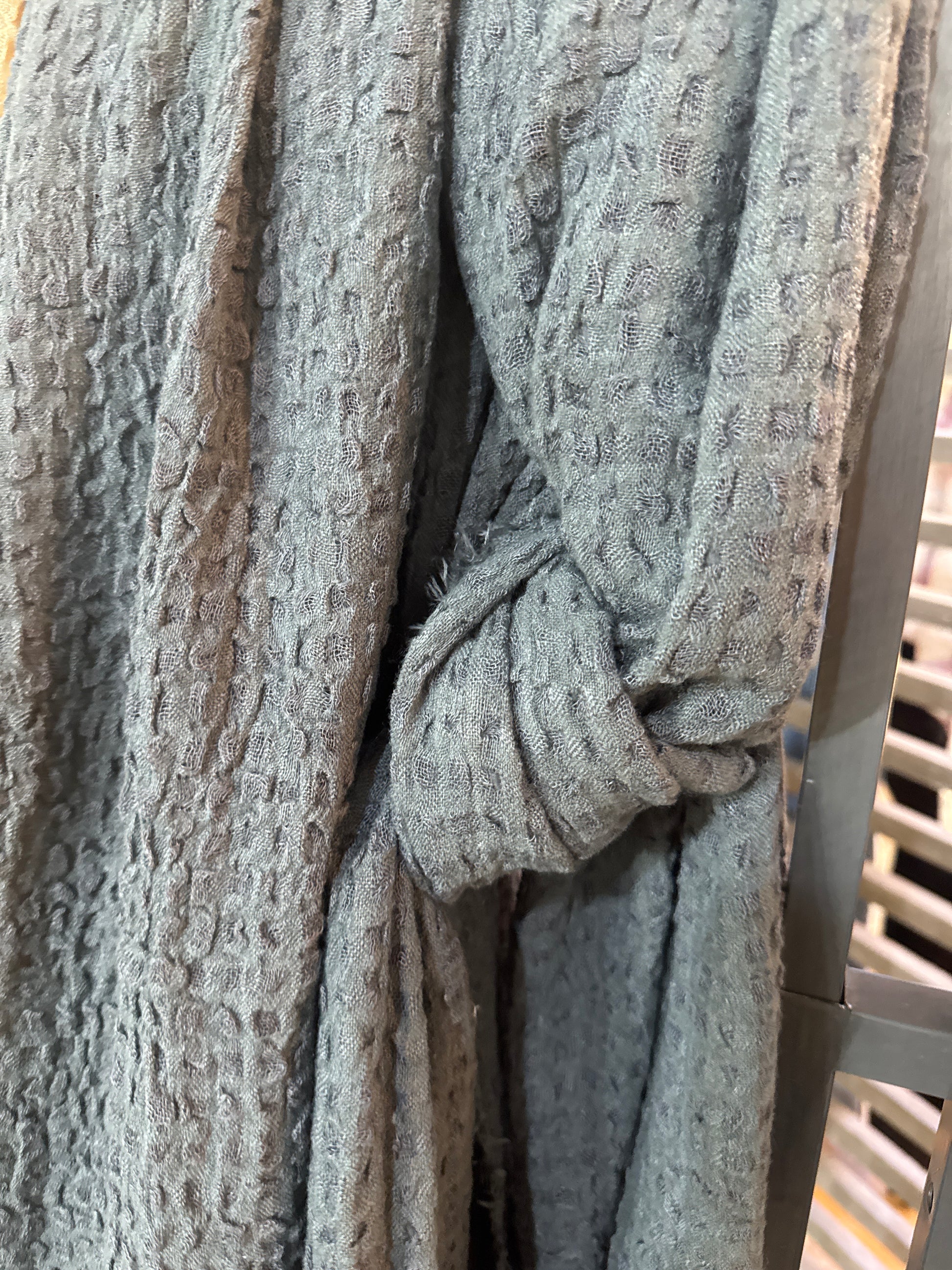 Oversized blanket scarf in a lightweight textured gauze fabric.