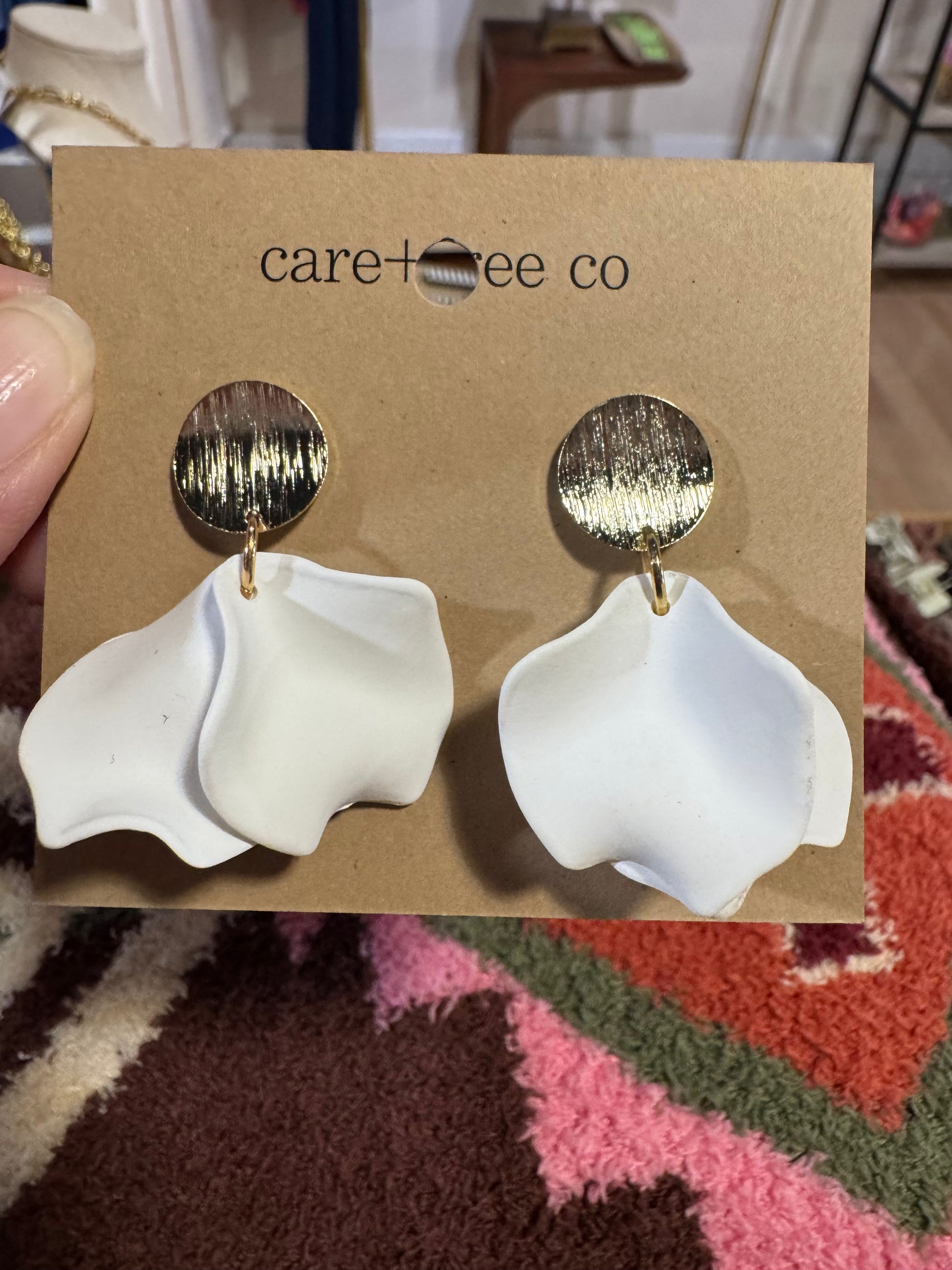 Mini Clay petals attached to brushed gold color studs.