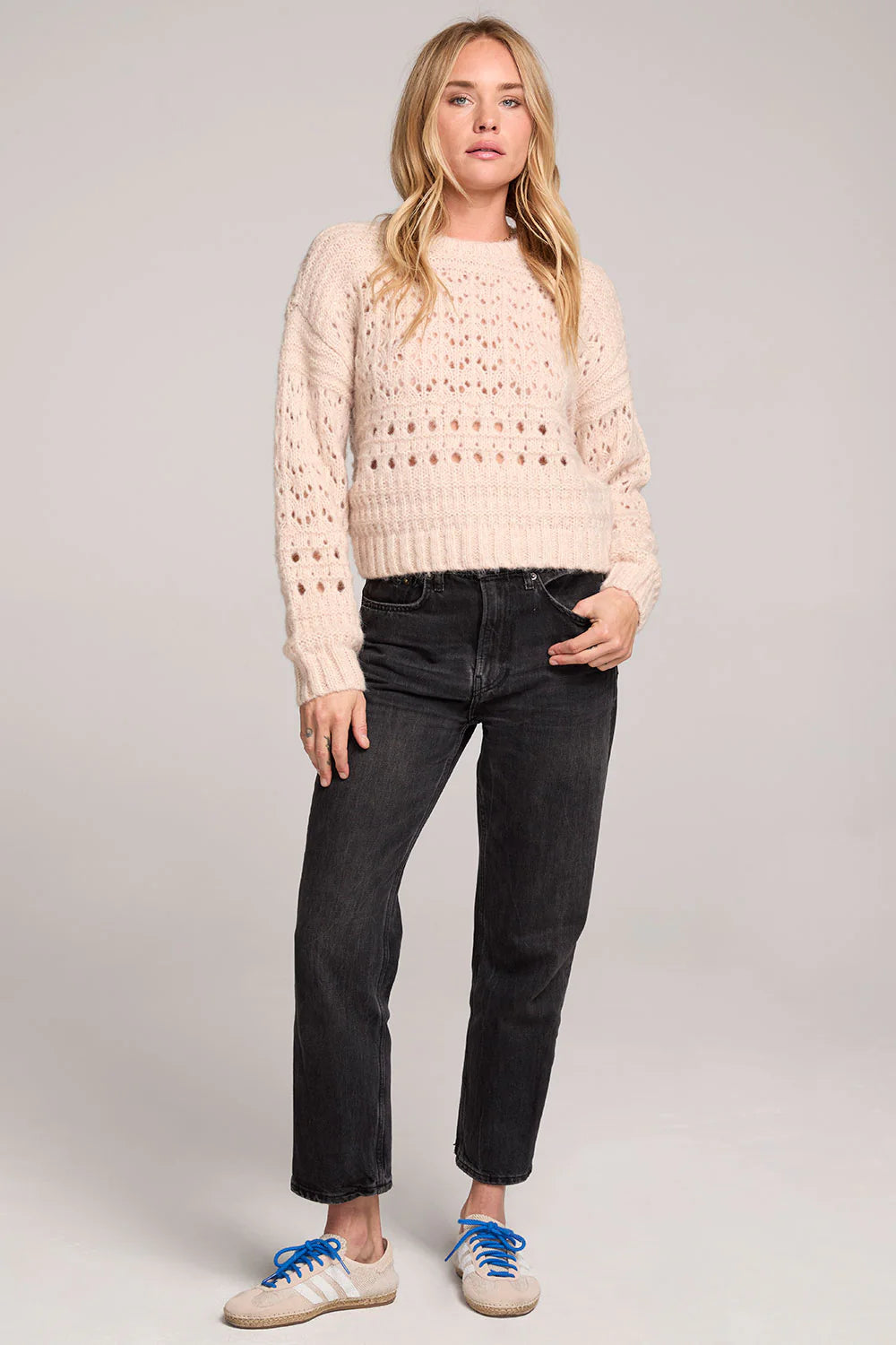 The Ronnie Natural Sweater offers a cute and classic cropped boxy fit with elegant gigot sleeves.