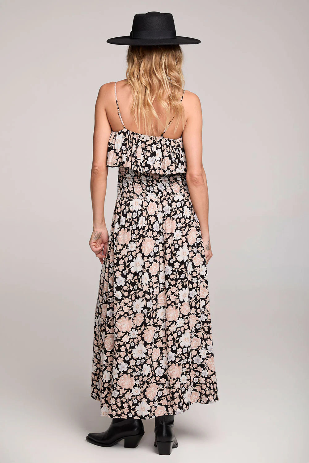 The Scotlynn Midi Dress embodies mysterious romance with its classic dark floral print and long, flowing silhouette.