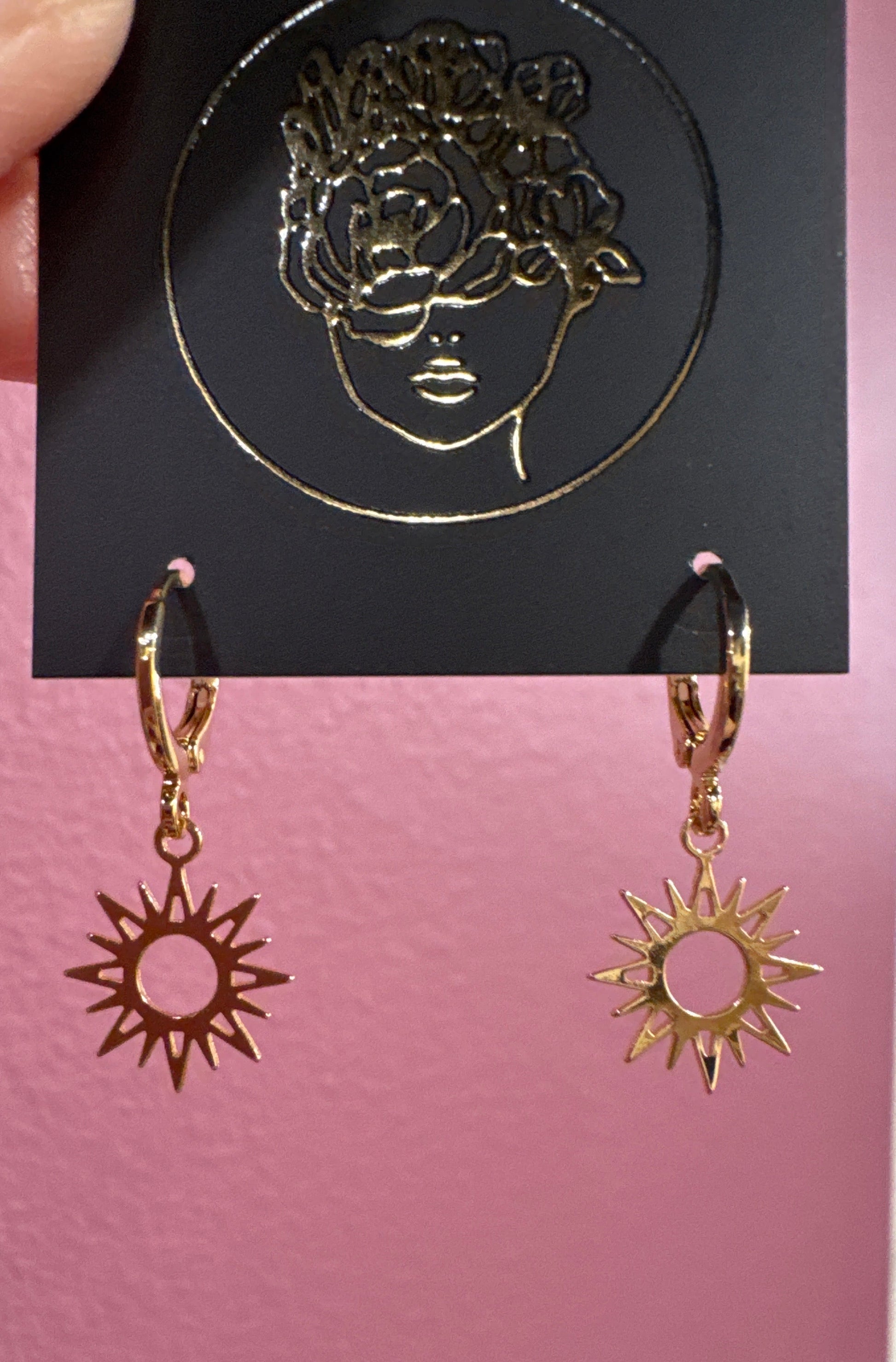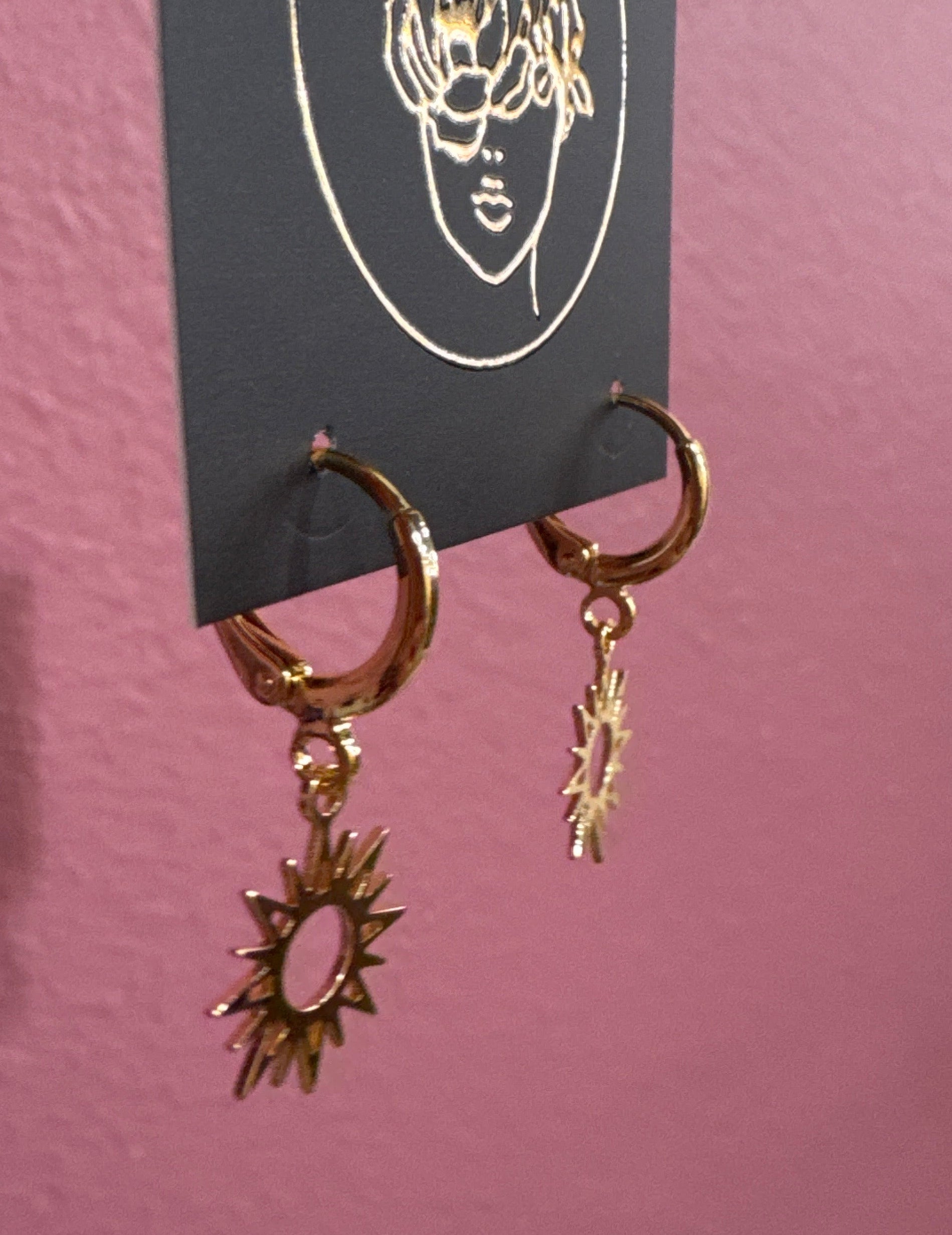 Shine in these beautiful gold sun huggies on your ears! Get ready to add some serious fun to your earring game with these gold sun huggies! They'll definitely turn heads (and sparkle) wherever you go.