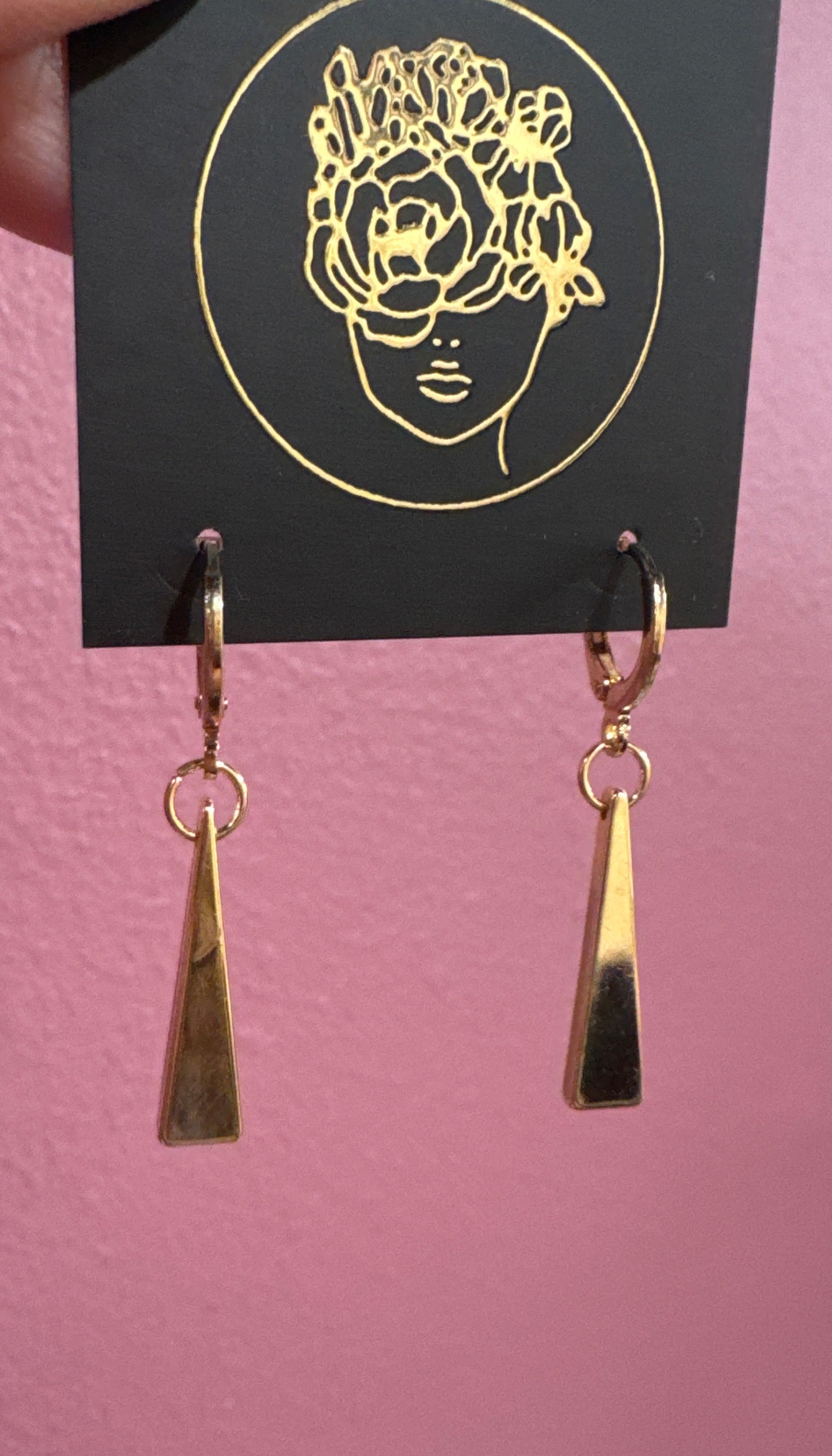 Rock these hella cool gold triangle geo huggies on your ears! Get ready to add some serious edge to your earring game with these rad gold triangle geo huggies! They'll definitely turn heads (and turn up the cool factor) wherever you go.